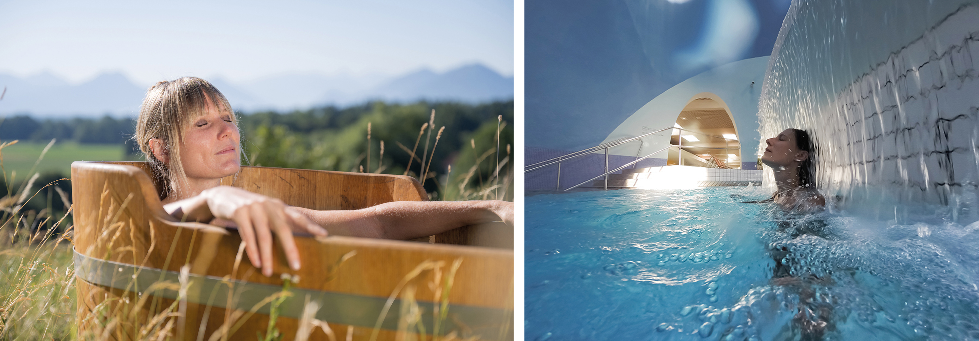 Moor, das „schwarze Gold“, lindert Entzündungen und Schmerzen und trägt dank Detox-Effekt effektiv zum Stressabbau bei. Nicht minder wohltuend ist Heilwasser. Schon Römer und Kelten schätzten es wegen seines Reichtums an Mineralien und Spurenelementen: Als Trinkkur regt es den Stoffwechsel an, als Bad stärkt es den Kreislauf und mehr.